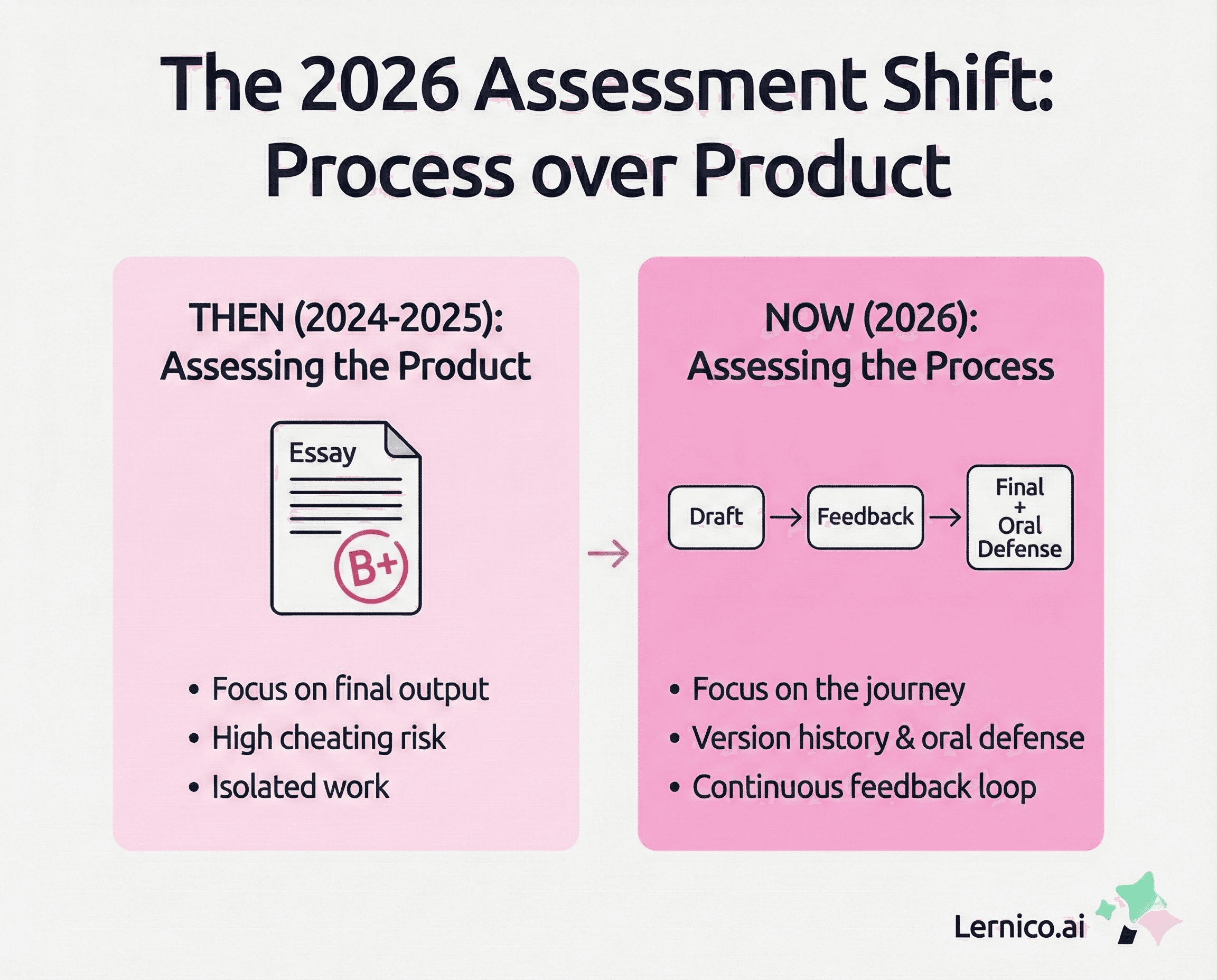 Throughout 2024 and 2025, the debate was almost exclusively about cheating. In 2026, we see a deeper insight: the problem isn't that students use the tools, but that we are still assessing the "Product" (the finished essay) instead of the "Process" (how the student got there).
