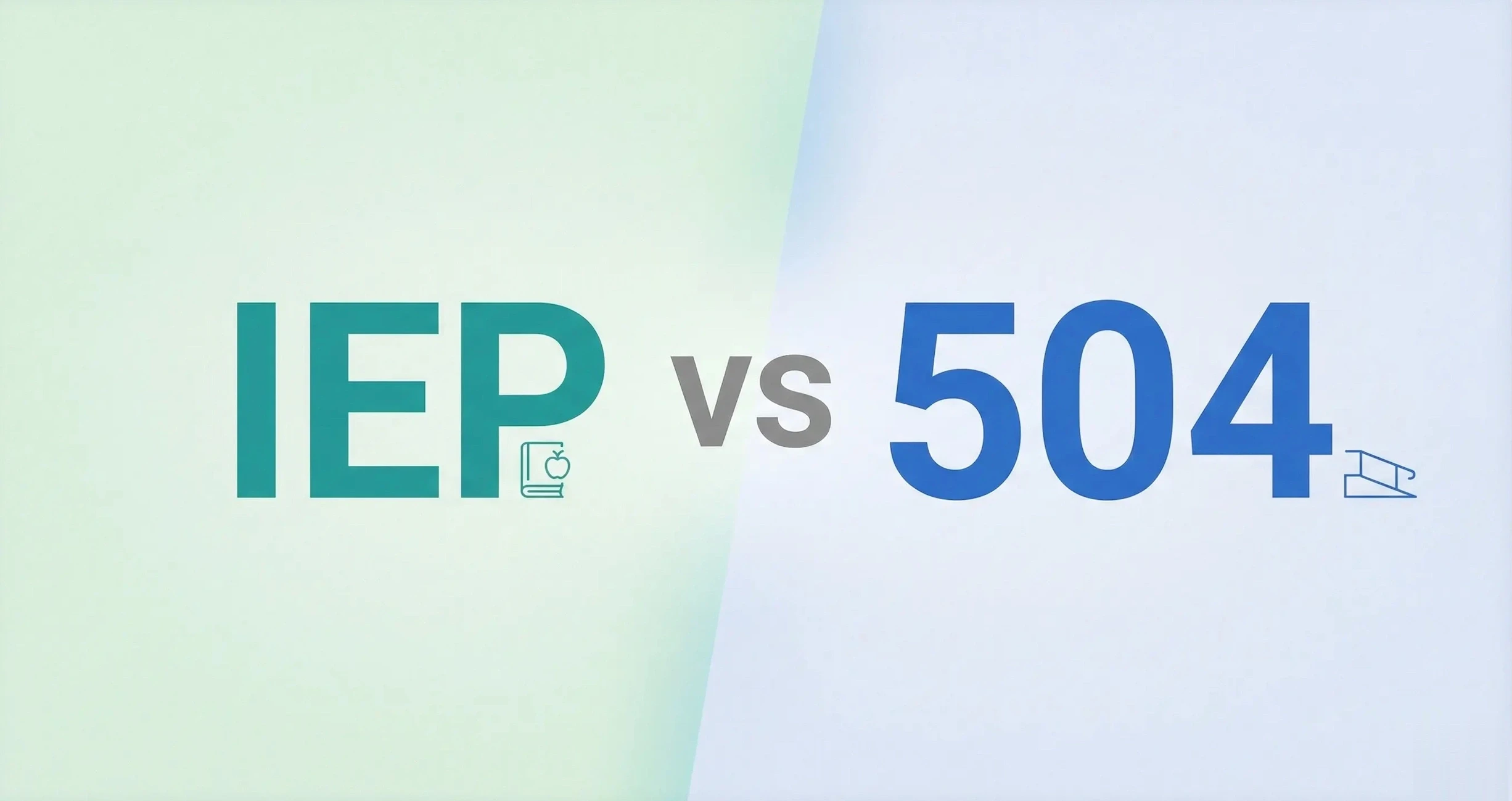 An IEP (Individualized Education Program) is a legal document under IDEA that provides specialized instruction and related services for students with one of 13 qualifying disabilities. A 504 plan, governed by Section 504 of the Rehabilitation Act, provides accommodations and access to the general education curriculum for students with any disability that substantially limits a major life activity. Every student with an IEP is also automatically protected under Section 504, but most 504 students do not qualify for an IEP, the eligibility bar is broader for 504 plans and the services are limited to accommodations.
